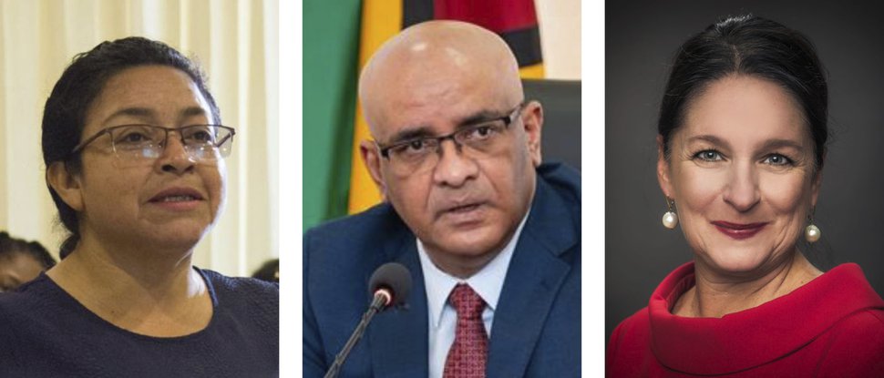 Laura George (left) is Governance and Rights Coordinator at the Amerindian Peoples Association. Bharrat Jagdeo is Vice-President of Guyana. Mary Grady is the Executive Director of the forest carbon certifier ART.
