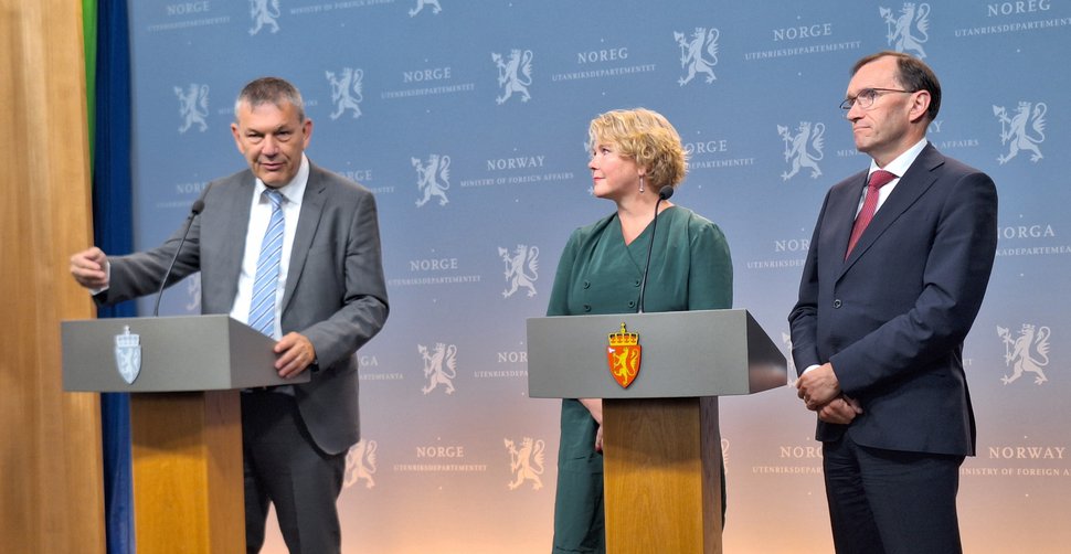 Commissioner General of UNRWA Philippe Lazzarini (left), Norwegian Development Minister Anne-Beathe Tvinnereim, and Foreign Minister Espen Barth Eide  (Photo: Development Today)