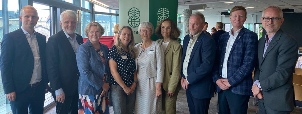 From left: Secretary General of Strømme Foundation Erik Lunde, Secretary General of Norwegian Church Aid Dagfinn Høybråten, Development Minister Anne Beathe Tvinnereim, Ann Stewart Pedersen of Save the Children Norway, Secretary General of ADRA Norway Birgit Philipsen, Magnhild Vasset of Norwegian Church Aid, Secretary General of Norwegian Peoples Aid Raymond Johansen, Kaj-Martin Georgsen of CARE Norway and Director General of Norad Bård Vegar Solhjell. (Photo by Synnøve Aasland / Norad)