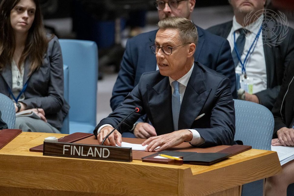 On the sidelines of the UN General Assembly, Finnish President Alexander Stubb criticised Development and Trade Minister Ville Tavio for his decision not to join a Ukraine gender-responsive recovery alliance. Here, Stubb addresses the UN Security Council in September 2024 (Photo: UN Photo / Manuel Elías)